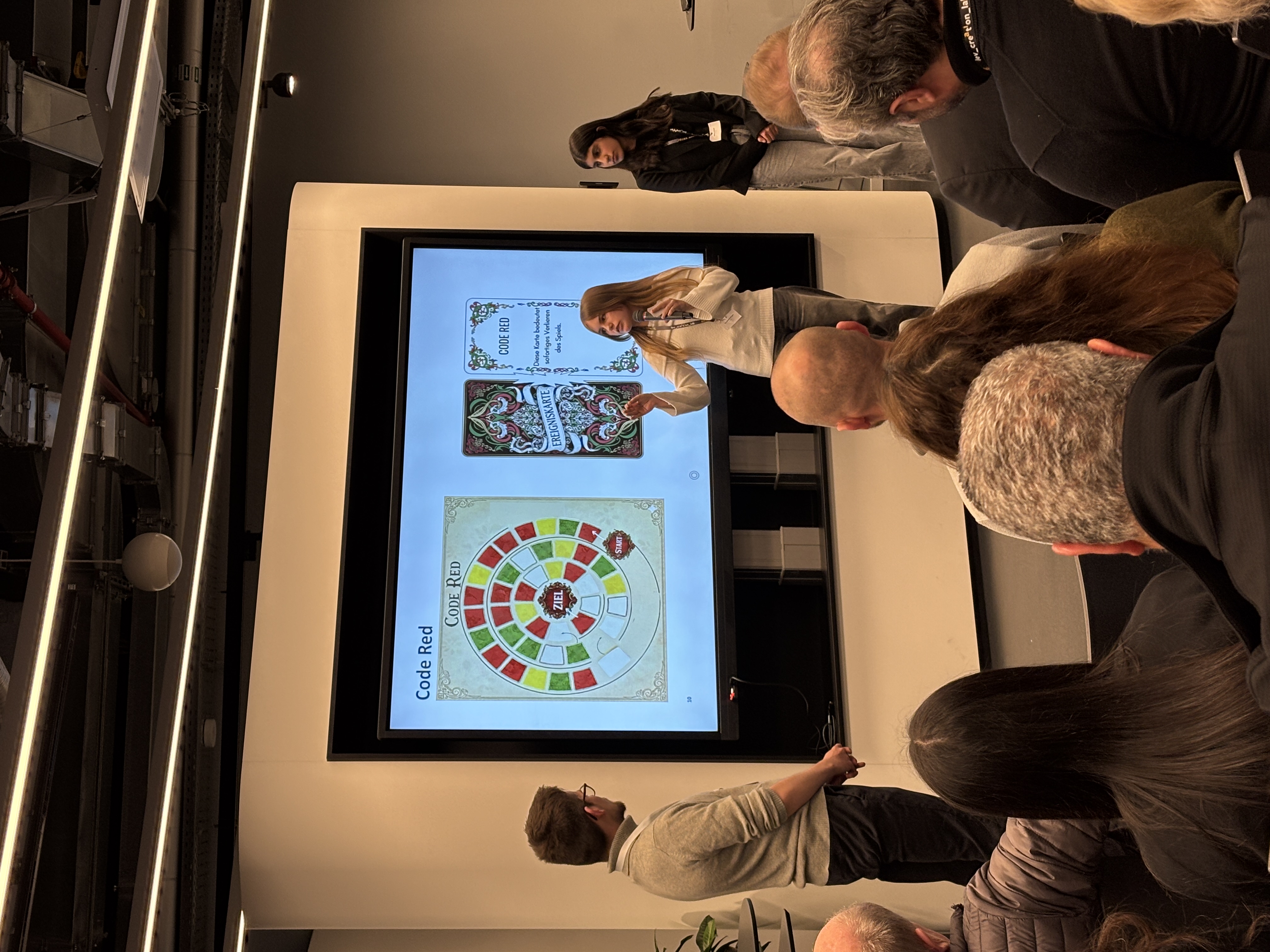 Mit den erworbenen Kenntnissen und den ersten praktischen Erfahrungen aus der AG entwickelten die Jugendlichen eigene Projekte. Zwar standen ihnen Mentor*innen aus der Praxis zur Seite, doch galt die Devise: Jetzt seid ihr dran. Und die Jugendlichen legten los. Bei der Projektvorstellung in der Covestro-Zentrale konnten die Gäste heute einen mit KI entwickelten Podcast aus dem Jahr 2055 über eine Weltwirtschaftskrise hören. Zwei Jugendliche entwickelten mithilfe von KI ein Brettspiel zum Thema „Gesundheit“. Zwei weitere Gruppen widmeten sich eigenen Game-Konzepten: eines über einen Wald, der gerettet werden muss, sowie eines über eine Zukunftswelt, in der die Menschheit den Kampf gegen die KI wagt.