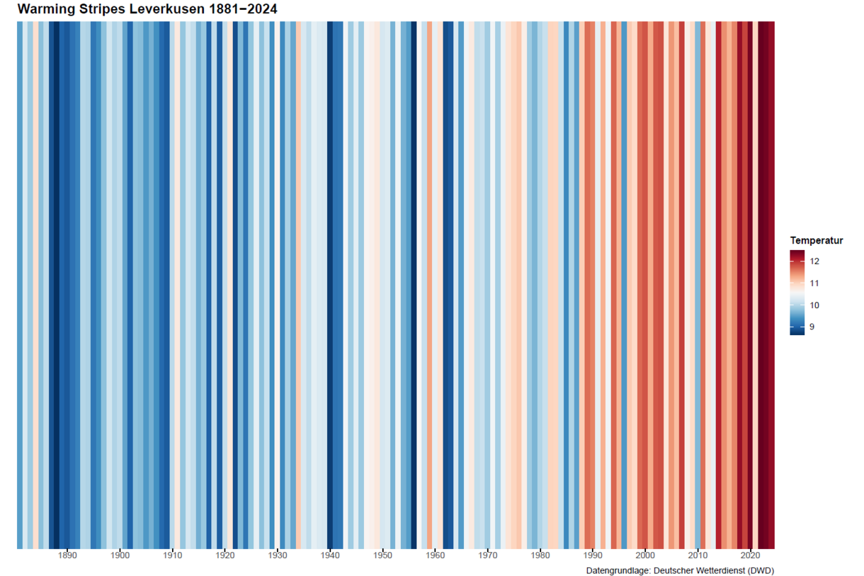 Heiße Sommertage kommen immer häufiger vor. Auch in Leverkusen wird es immer wärmer. Mit 7 bis 8 Tagen über 30 Grad Celsius pro Jahr liegt Leverkusen deutlich über dem NRW-Durchschnitt, wie das Klimaanpassungskonzept zeigt.