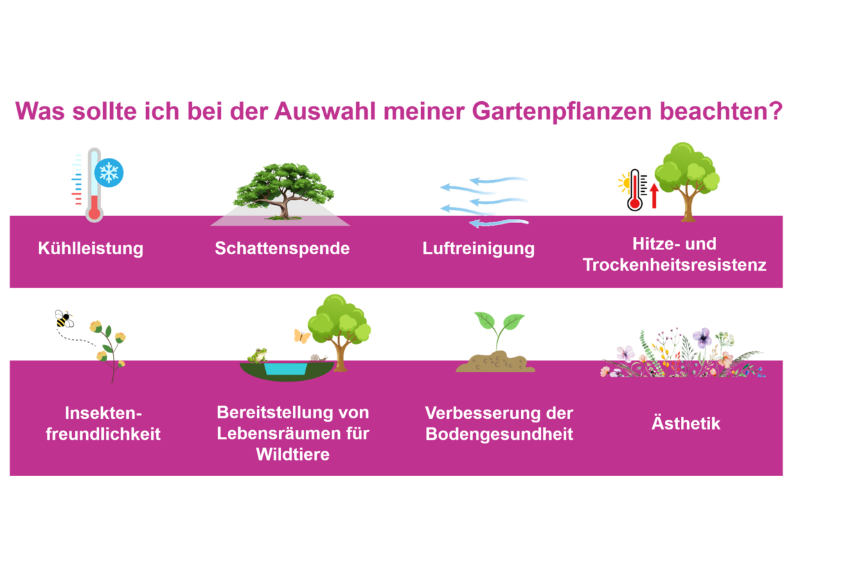 Begrünungsmaßnahmen auf dem eigenen Grundstück beeinflussen nicht nur die Temperatur im Haus und der Umgebung, sondern auch die Temperatur in der Nachbarschaft. Hier sind konkrete Empfehlungen für eine grünere Gestaltung und für eine Vorbereitung auf sich verändernde Umweltbedingungen wie extreme Hitze und Regenfälle.