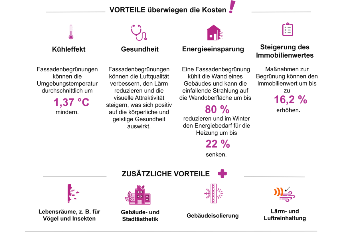 Bau- und Wartungskosten für Fassadebegrünung