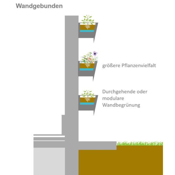 - Bitte beachten Sie bei der Planung Ihrer begrünten Fassade die aktuellsten Vorgaben zum Brandschutz, z. B. die der AGBF Bund (Öffnet in einem neuen Tab).