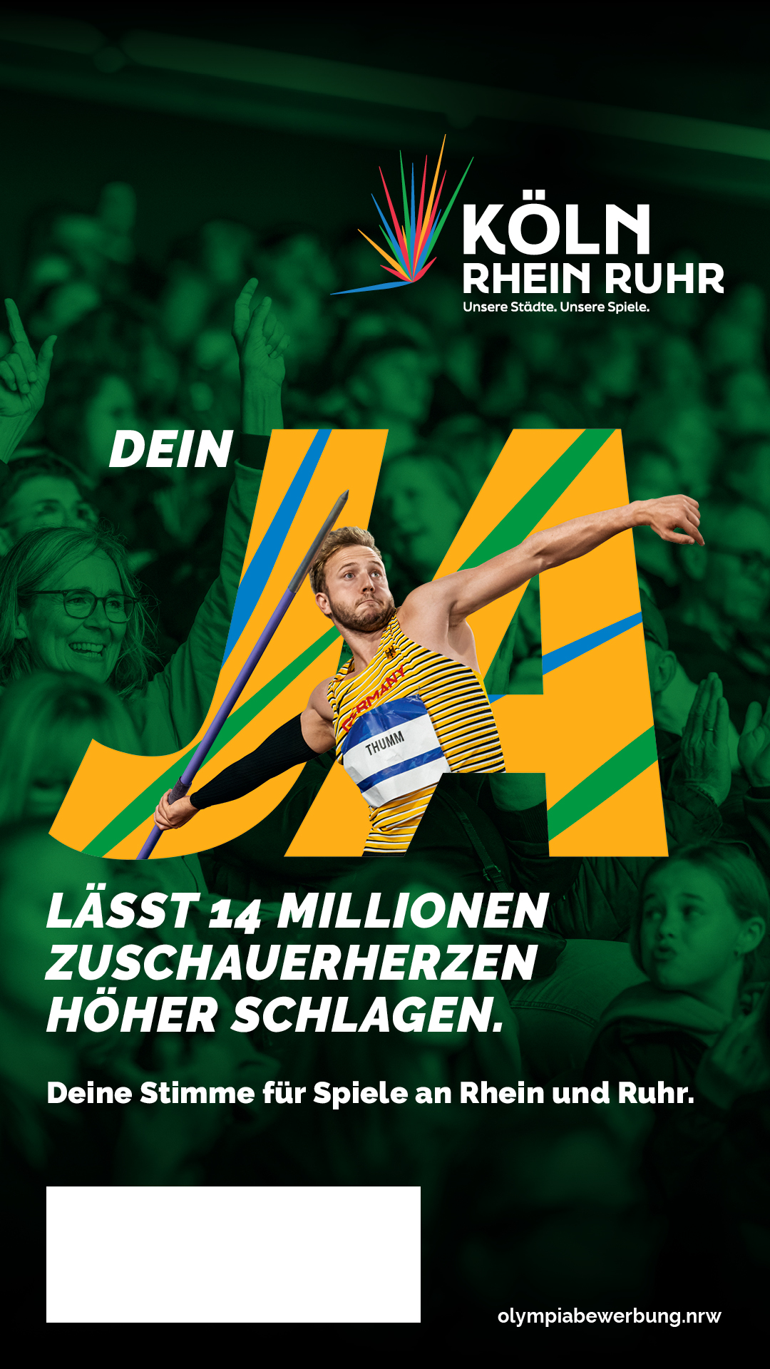 Neben der Region KölnRheinRuhr bewerben sich auch die Städte München, Hamburg und Berlin. Die Entscheidung des Deutschen Olympischen Sportbundes für eines der vier Bewerberkonzepte wird voraussichtlich im September 2026 fallen.